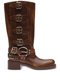 buckle-detail leather boots Miu Miu puts a rebellious twist on these boots. Crafted from buttery soft leather, buckle detailing adds a tough edge to this pair. Highlights - Brown - Leather - Buckle fastening - Round toe - Mid-calf length - Low block heel - Rubber sole Composition Leather 100% SIZE & FIT Measurement HEEL 2.16 in(5.5 cm) Sole height 0.78 in(2 cm) HEIGHT 12.59 in(32 cm)