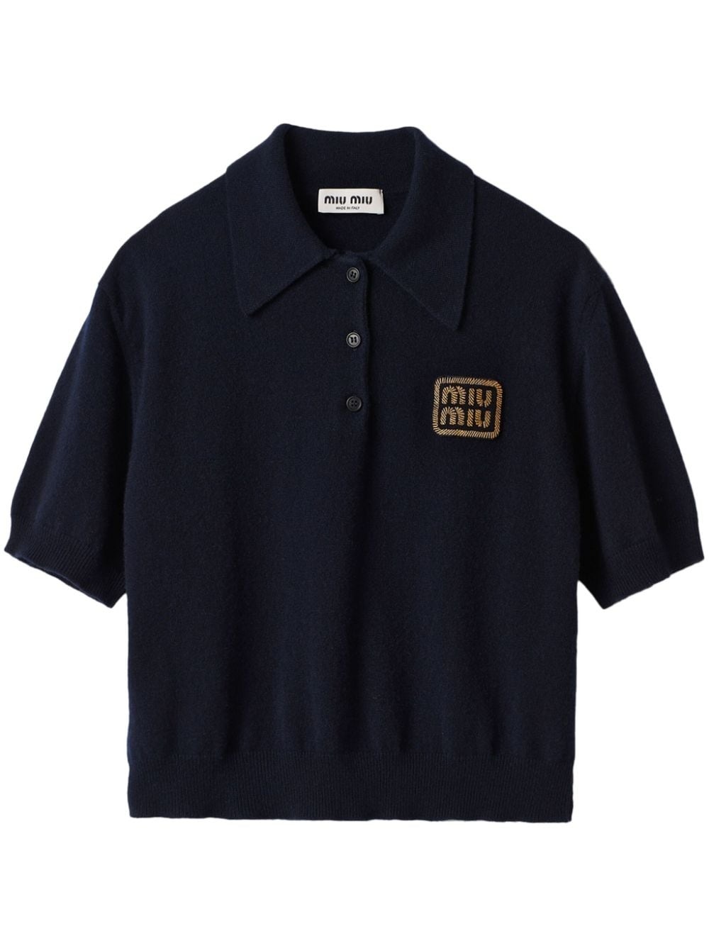 cashmere polo shirt Highlights - Navy blue - Cashmere - Knitted construction - Ribbed trim - Applique logo - Polo collar - Short front button fastening - Short sleeves - Straight hem Composition Cashmere 100% Washing instructions Read Manufacturer Guidelines