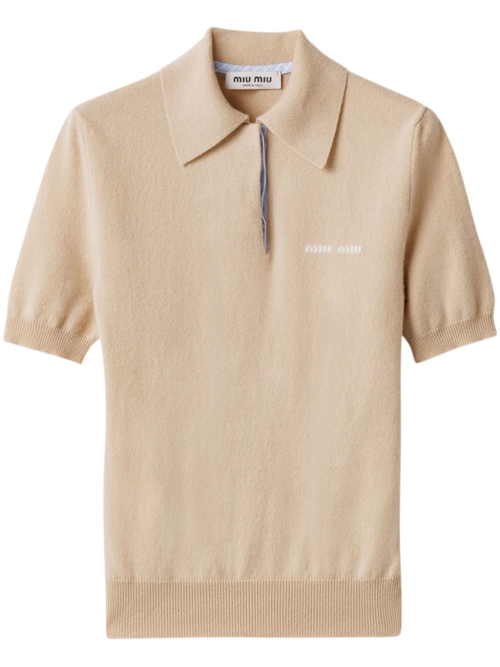 cashmere polo top Highlights - Beige - Concealed front fastening - Ribbed cuffs and hem - Intarsia-knit logo Composition Cashmere 100%