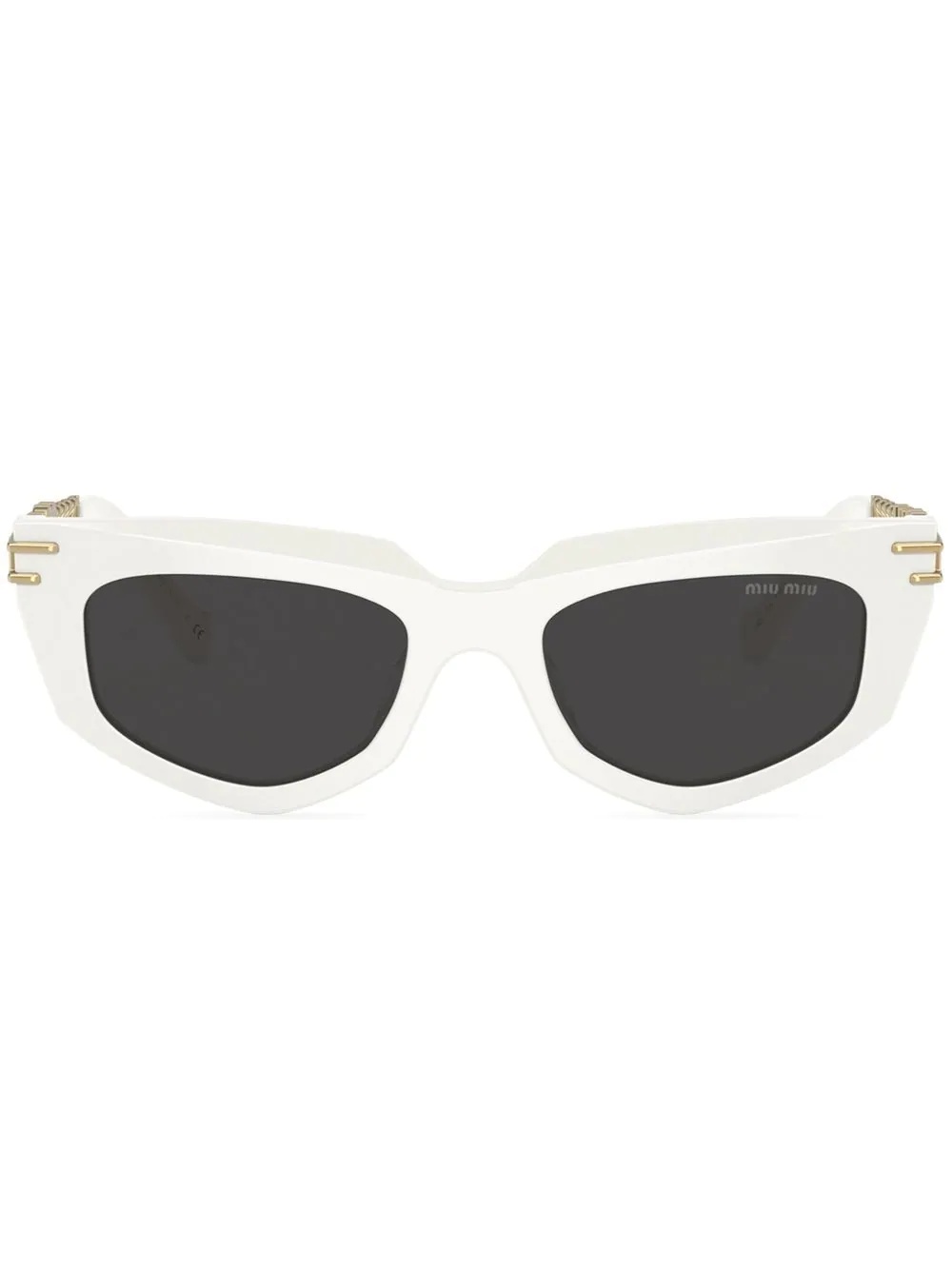 chain-embellished cat-eye sunglasses off-white gold-tone hardware cat-eye frame tinted lenses straight arms curved tips These glasses come with a protective case. Composition Acetate 100% SIZE & FIT Measurement Bridge Width 0.74 in(1.9 cm) Lens Diameter 2 in(5.1 cm) Total Width 5.31 in(13.5 cm)