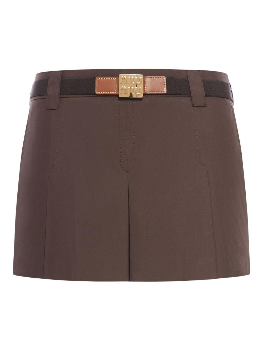 cotton mini skirt Highlights - Brown - Front pleat - Logo detailing - Golden buckle fastening Composition Cotton 100% Washing instructions Read Manufacturer Guidelines