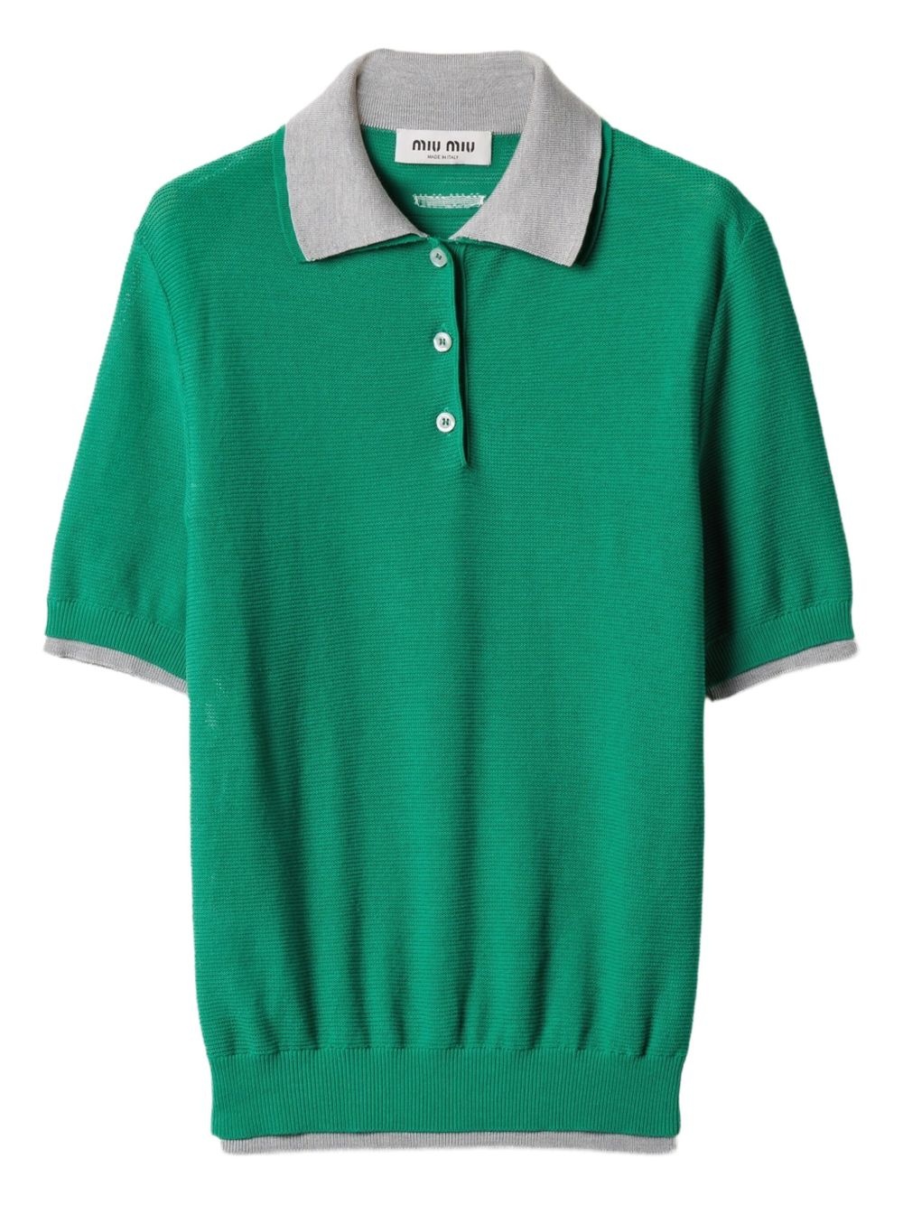 cotton polo shirt Highlights - Green - Front button placket - Short sleeves - Ribbed cuffs and hem - Contrasting border Composition Cotton 100% Washing instructions Read Manufacturer Guidelines