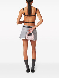 crystal-embellished denim cropped top Cut to a cropped silhouette, Miu Miu's denim top is illuminated with crystal embellishments. Highlights - Light grey - Cotton - Denim - Washed - Crystal embellishment - Square neck - Spaghetti straps - Rear buckle fastening - Cropped Composition Cotton 100% Washing instructions Read Manufacturer Guidelines