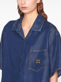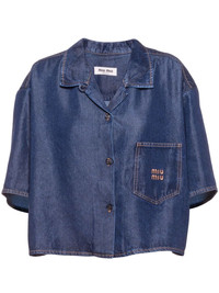 denim shirt Highlights - Blue - Cotton - Denim - Front button fastening - Spread collar - Drop shoulder - Short sleeves - Embroidered logo at the chest - Chest patch pocket - Straight hem - Cropped Composition Viscose 100%
