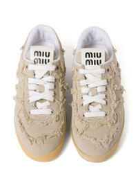 denim sneakers Highlights - Light beige - Denim - Panelled design - Front lace-up fastening - Branded heel counter - Frayed detailing - Logo patch at the tongue - Round toe - Branded insole - Flat rubber sole Composition Outer: Cotton 100% Sole: Rubber 100%