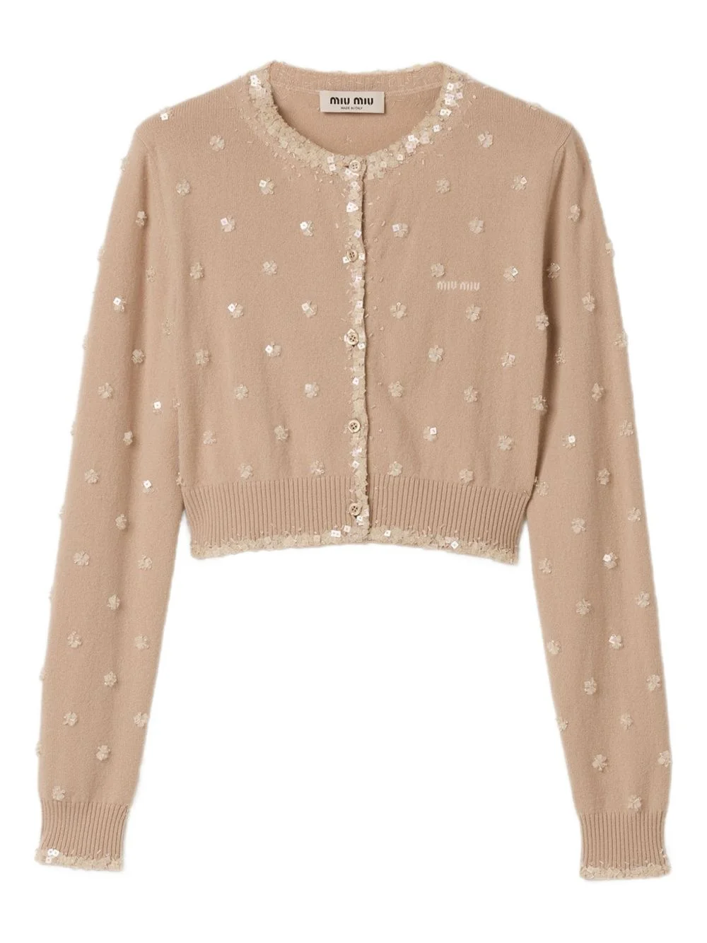 embroidered-details crew-neck cardigan Highlights - Neutral beige - Mother-of-pearl buttons - Crew neck - Embroidered details Composition Wool 100% Washing instructions Read Manufacturer Guidelines