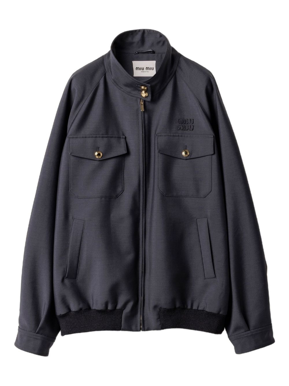 embroidered logo ribbed-knit jacket Highlights - Grey - Zipper and button closure - Flapped patch pockets - Ribbed knit hem - Embroidered logo Composition Mohair 60%, Virgin Wool 40% Washing instructions Read Manufacturer Guidelines