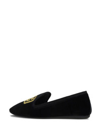embroidered-logo slippers Highlights - Black - Velvet - Embroidered logo to the front - Slip-on style - Grosgrain ribbon trim - Almond toe - Branded insole - Rubber sole Composition Outer: Viscose 100% Lining: Fabric 100% Sole: Rubber 100%