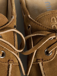 Faded suede mules Highlights - Olive brown - Slip-on style - Front lace-up fastening - Branded leather insole - Moc stitching Composition Sole: Rubber 100%, Calf Leather 100% Outer: CALFSKIN 100%