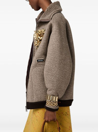 fleece bomber jacket Highlights - Beige - Stand collar - Zip fastening - Knit cuffs - Vertical pockets - Knit belt Composition Nylon 100% Washing instructions Read Manufacturer Guidelines