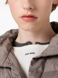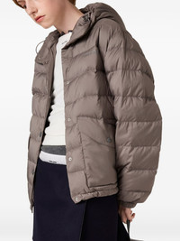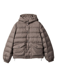 hooded down jacket Highlights - Grey - Padded design - Drawstring hood - Long sleeves - Elasticated cuffs - Flap pockets - Drawstring hem Composition Outer: Recycled Polyester 100% Lining: Goose Down 100% Washing instructions Read Manufacturer Guidelines