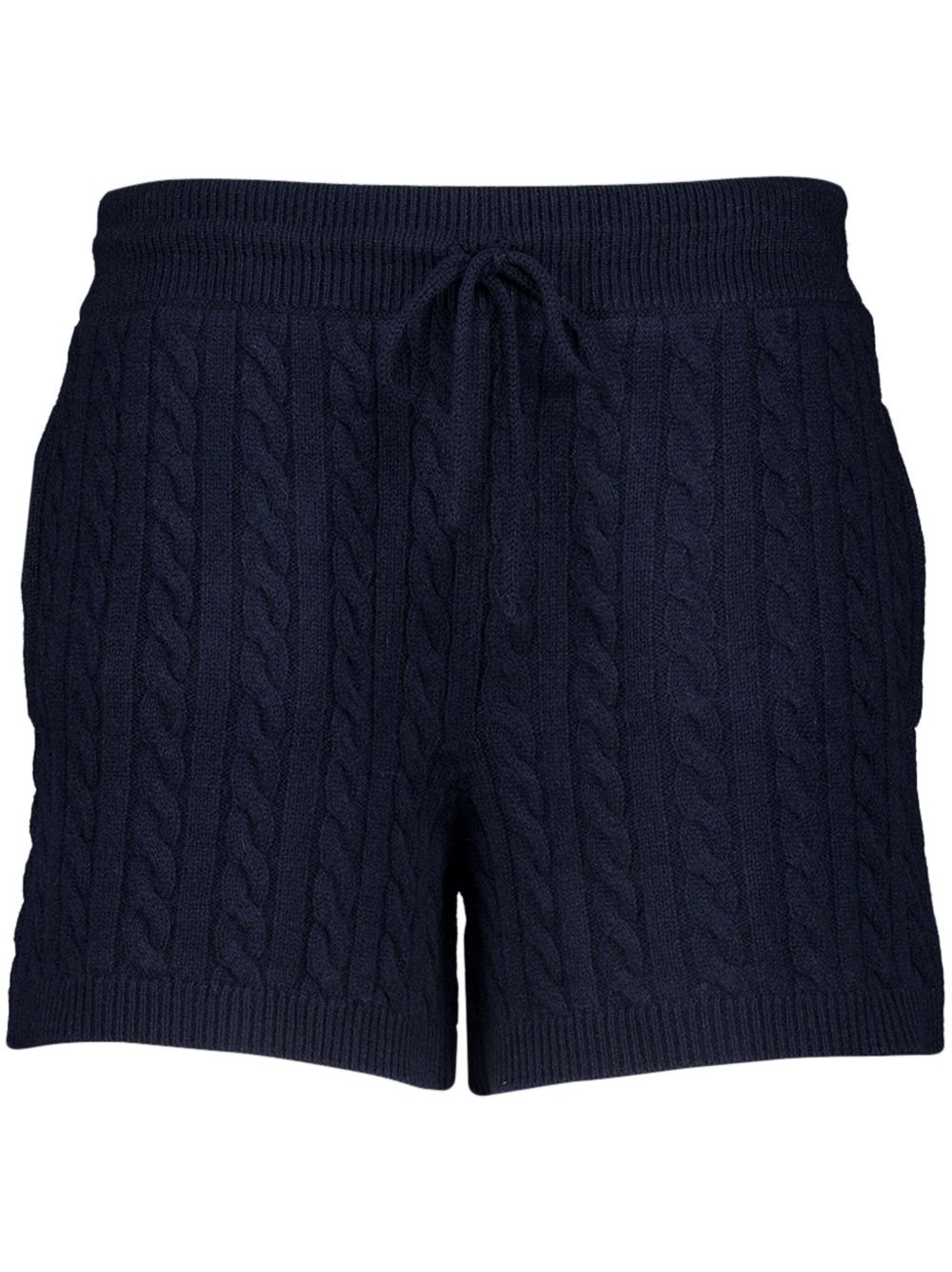 intarsia-knit shorts Highlights - Navy blue - Cashmere - Knitted construction - Intarsia-knit logo - Elasticated waistband - Thigh-length Composition Cashmere 100% Washing instructions Read Manufacturer Guidelines