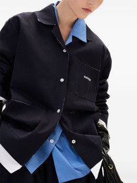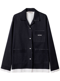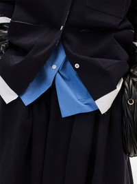Knit and poplin shirt Highlights - Navy blue/white - Cotton - Double layer - Front button fastening - Raw-cut edge - Cuban collar - Long sleeves - Ribbed cuffs - Jacquard logo motif at the chest - Three front patch pockets - Straight hem Composition Cotton 100%, Silk 100%