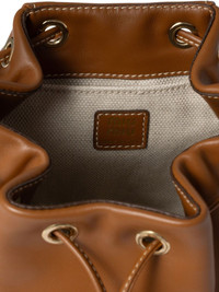 leather backpack Highlights - Caramel brown - Top drawstring fastening - Single top handle - Adjustable shoulder straps - Front zip-fastening pocket Composition Outer: Calf Leather 100%, Cotton 100% SIZE & FIT Measurement DEPTH 4.52 in(11.5 cm) HEIGHT 8.66 in(22 cm) WIDTH 7.08 in(18 cm)