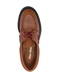 leather loafers Highlights - Brown - Calf leather - Smooth grain - Front lace-up fastening - Pintuck detailing - Raised logo detail - Logo-embossed tongue - Moc stitching - Almond toe - Branded insole - Ridged rubber sole - This piece comes complete with a protective dust bag. Composition Leather 100% SIZE & FIT Measurement HEEL 2.16 in(5.5 cm) PLATFORM 1.57 in(4 cm)