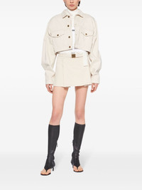 logo-applique denim jacket Highlights - Ecru - Cotton - Denim - Applique logo - Front button fastening - Garment dyed - Classic collar - Seam detailing - Front flap pockets - Long sleeves - Buttoned cuffs - Cropped - Straight hem Composition Cotton 100%