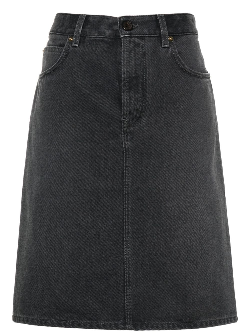 logo-applique denim mini skirt Highlights - Dark grey - Cotton - Denim - Belt loops - Classic five pockets - Applique logo - Rear slit - Thigh-length - Straight hem - Front button and zip fastening Composition Lining: Polyester 65%, Cotton 35% Outer: Cotton 100% SIZE & FIT Model measurements Height 5 ft 9 in(1.75 m) Bust/Chest 31.88 in(81 cm) Hips 34.64 in(88 cm) Waist 24.01 in(61 cm) FittingInformation This midi-length skirt is intended to be worn just below the waist The vented hem offers movement at the rear Sturdy and hard-wearing, this denim piece offers no stretch This piece fits true to size – take your usual size