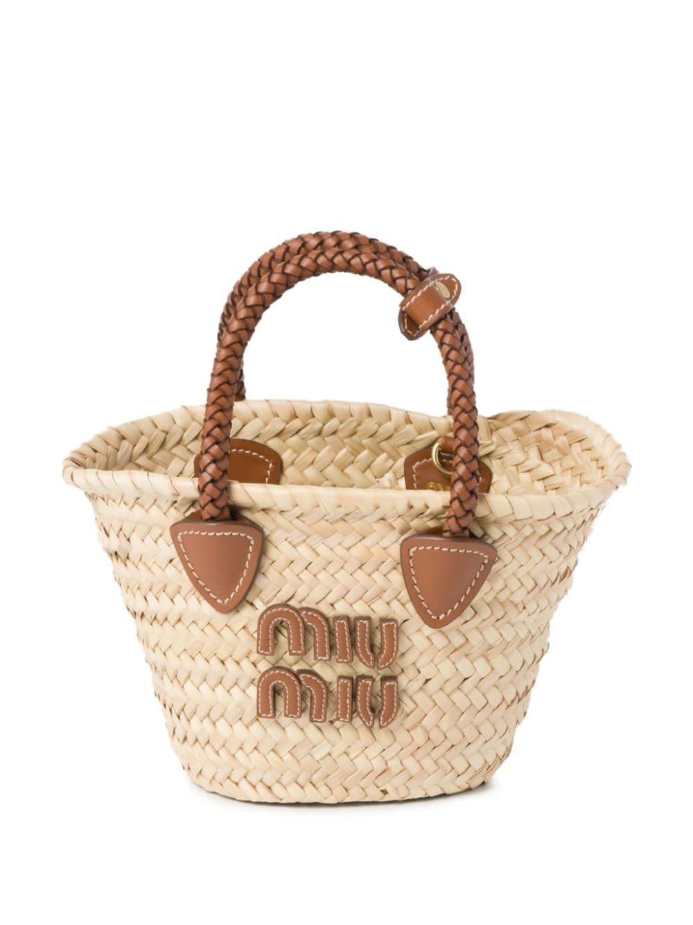 logo-applique woven tote bag Highlights - Light beige - Brown - Woven design - Adjustable detachable shoulder strap - Braided top handles - Handle holder - Applique logo - Open top - Main compartment - Gold-tone hardware Composition Raffia 100%, Leather 100%