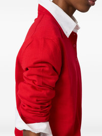 logo-detail long-sleeves polo shirt Highlights - Red - Plain knit - Ribbed knit cuffs - Ribbed knit hem - Front button-closure - Logo-detail Composition Wool 100% Washing instructions Read Manufacturer Guidelines