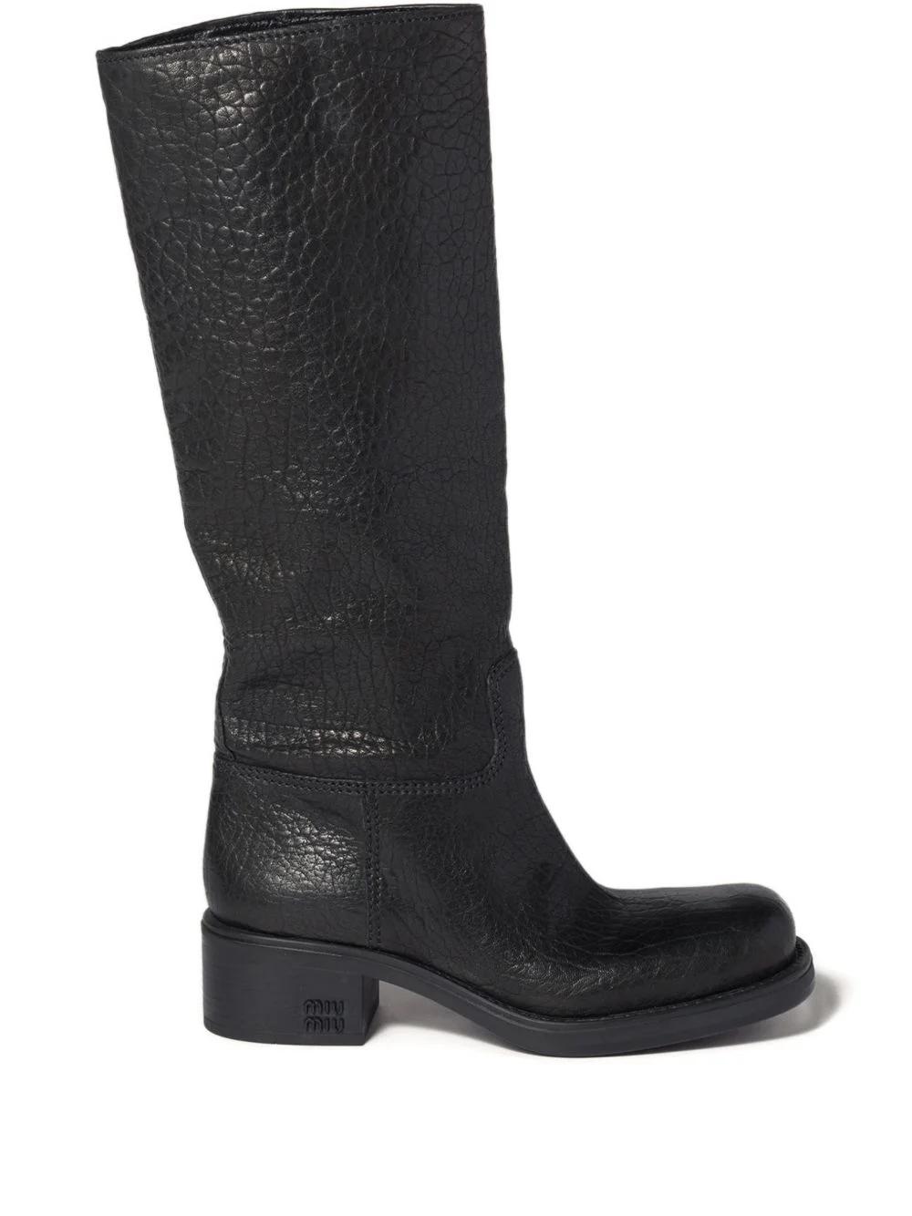 logo-embossed leather boots Highlights - Black - Rubber sole - Embossed logo at the heel - Square toe Composition Outer: Lambskin 100% Sole: Rubber 100% Lining: Calf Leather 100%