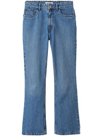 logo-embroidered flared jeans Cut to a subtly flared silhouette, these classic blue jeans from Miu Miu display their brand name on the rear patch pocket for a refined branded touch. Highlights - Blue - Cotton - Denim - Mid-wash - Embroidered logo to the rear - Logo-embossed gold-tone button - High waist - Concealed fly and button fastening - Classic five pockets - Flared design Composition Lining: Polyester 65%, Cotton 35% Outer: Cotton 100% Washing instructions Read Manufacturer Guidelines