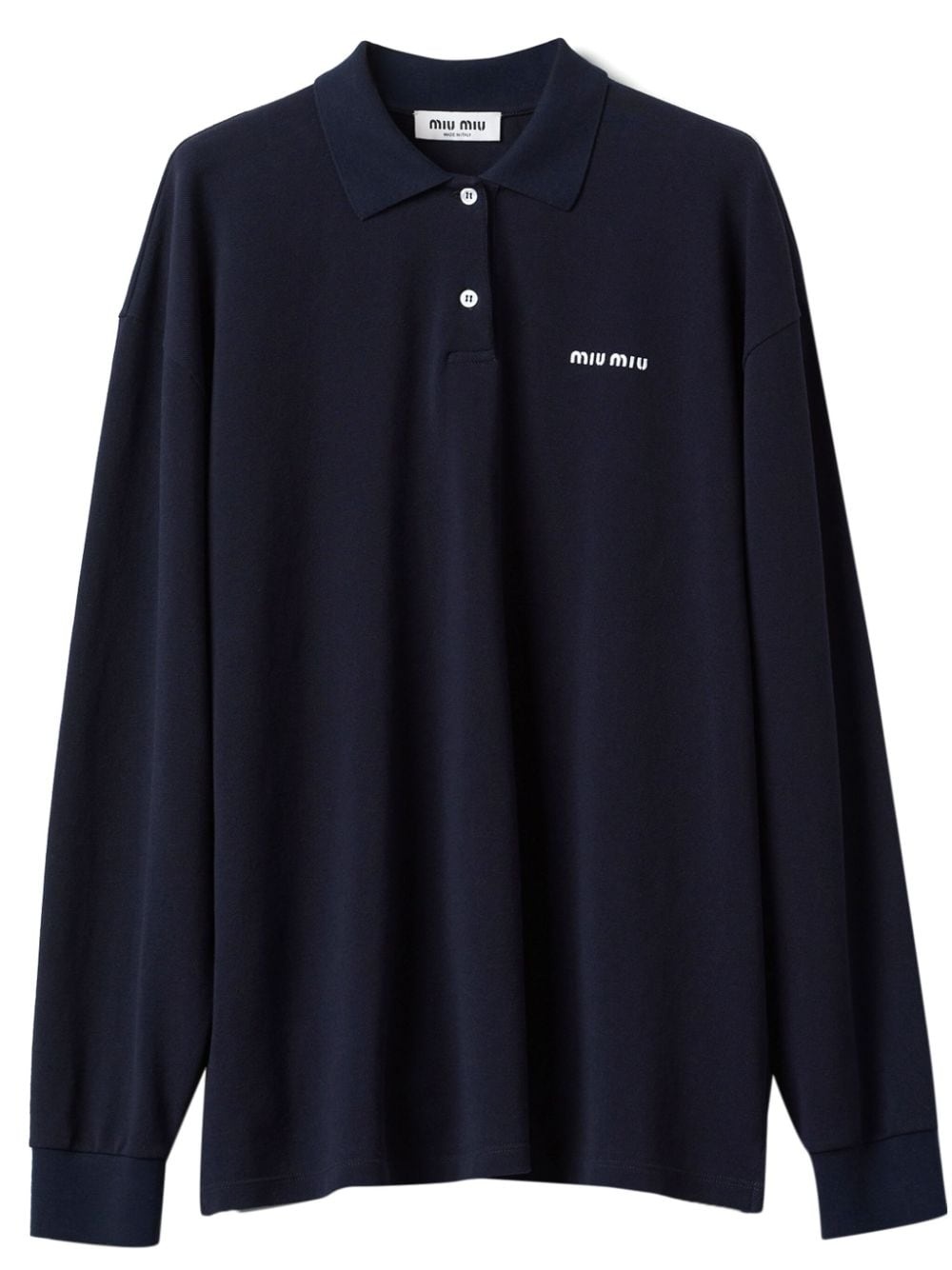 logo-embroidered pique polo shirt Highlights - Midnight blue - Cotton - Pique trim - Embroidered logo at the chest - Polo collar - Front button placket - Long sleeves - Straight hem Composition Cotton 100% SIZE & FIT FittingInformation Designed to be unstructured, offering a loose fit throughout Made from a midweight non-stretch fabric, this piece offers minimal elasticity when worn