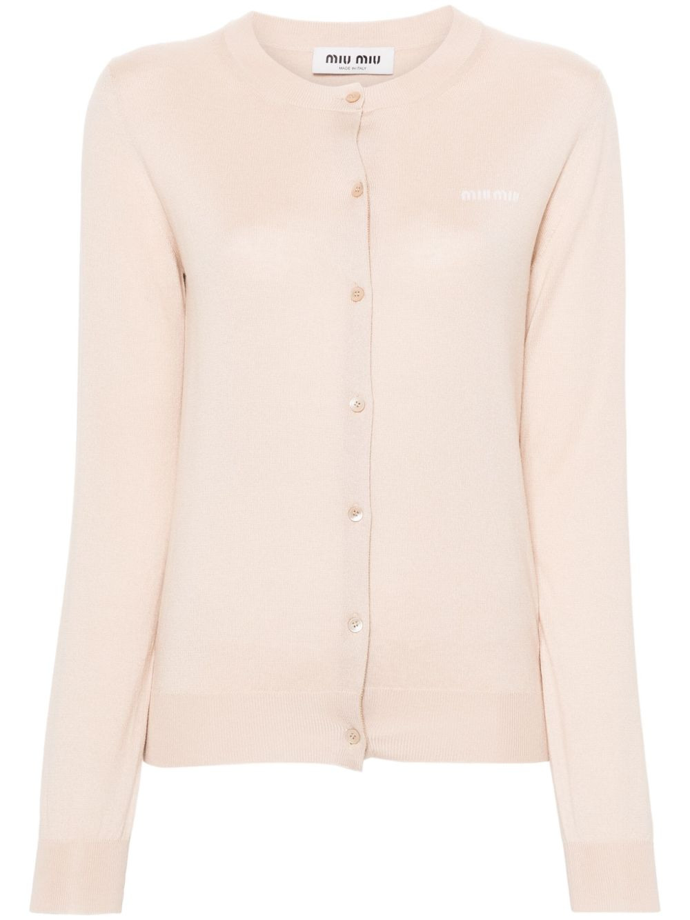 logo-intarsia cardigan Highlights - Light pink/white - Cashmere-silk blend - Fine knit - Intarsia-knit logo - Crew neck - Front button fastening - Long sleeves - Ribbed cuffs and hem Composition Cashmere 70%, Silk 30% SIZE & FIT Model measurements Height 5 ft 10 in(1.77 m) Bust/Chest 32.28 in(82 cm) Hips 35.03 in(89 cm) Waist 25.19 in(64 cm) FittingInformation Designed for a slim fit that sits just away from the body offering a close yet comfortable fit The ribbed hem offers a close, comfortable fit Made with a lightweight knit, this piece offers some stretch This piece fits true to size – take your usual size