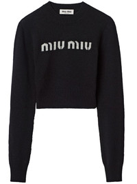 logo-intarsia cashmere jumper Miu Miu injects its timeless sleekness in this black jumper. Spun from plush cashmere, a contrasting intarsia logo elevates its casual cropped silhouette. Highlights - Black - Cashmere - Knitted construction - Intarsia-knit logo - Crew neck - Long sleeves - Ribbed cuffs and hem - Cropped Composition Cashmere 100% SIZE & FIT FittingInformation Designed for a slim fit that sits just away from the body offering a close yet comfortable fit The ribbed hem offers a close, comfortable fit Made with a lightweight knit, this piece offers some stretch Washing instructions Read Manufacturer Guidelines