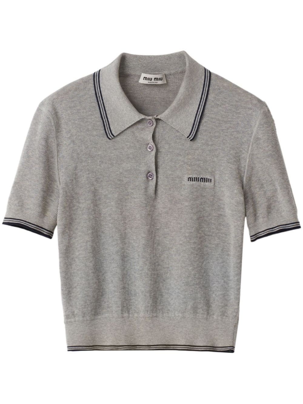 stripe-detail polo top Highlights - Grey - Cotton - Fine ribbed - Jacquard logo motif - Striped border - Polo collar - Front button placket - Short sleeves - Ribbed cuffs and hem - Cropped Composition Cotton 100%