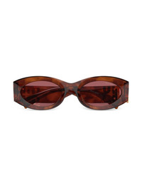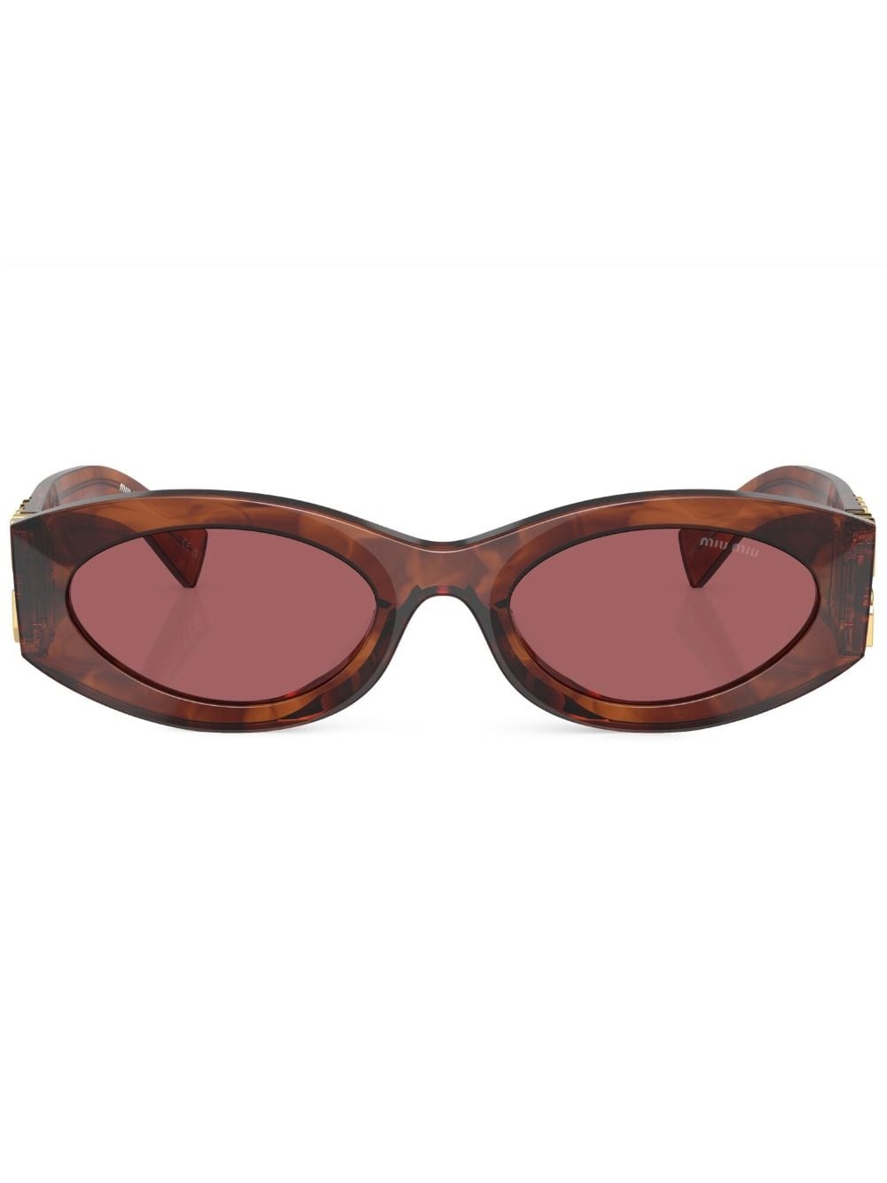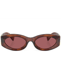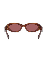 logo-lettering oval-frame sunglasses Highlights - Tobacco brown - Acetate - Tortoiseshell effect - Gold-tone logo lettering - Pink tinted lenses - Oval frame - Oversize arms - Curved tips - These glasses come with a protective case. Composition Acetate 100% SIZE & FIT Measurement Arm Length 5.31 in(13.5 cm) Bridge Width 0.82 in(2.1 cm) Lens Diameter 2.12 in(5.4 cm)