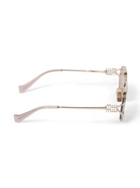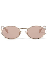 Logo oval-frame sunglasses Highlights - Gold-tone - Metal - Logo lettering - Oval frame - Pink tinted lenses - Nose pads - Straight arms - Curved tips - These glasses come with a protective case. Composition Metal 100% SIZE & FIT Measurement Arm Length 4.92 in(12.5 cm) Bridge Width 0.82 in(2.1 cm) Lens Diameter 2.12 in(5.4 cm)