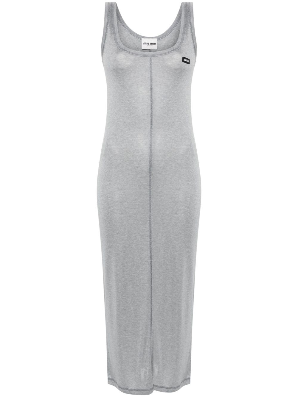 logo-patch dress Highlights - Light grey - Silk - Jersey texture - Scoop neck - Sleeveless - Seam detailing - Logo patch at the chest - Unlined - Straight hem - Pull-on style Composition Silk 100% SIZE & FIT Model measurements Height 5 ft 9 in(1.74 m) Bust/Chest 34.64 in(88 cm) Hips 36.61 in(93 cm) Waist 26.37 in(67 cm) FittingInformation Designed for a slim fit that sits just away from the body offering a close yet comfortable fit Made from a lightweight non-stretch fabric, this piece offers minimal elasticity when worn This piece fits true to size – take your usual size