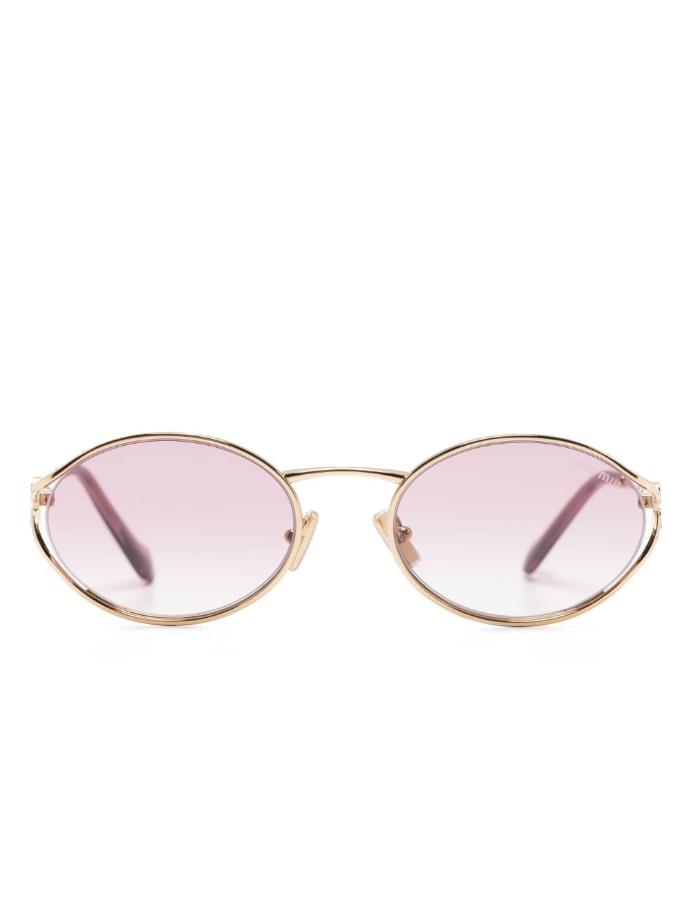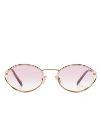logo-plaque oval-frame sunglasses Highlights - Pink - Metal - Gold-tone hardware - Logo plaque at the arm - Oval frame - Gradient lenses - Nose pads - Straight arms - Straight tips - These glasses come with a protective case. Composition Metal 100% SIZE & FIT Measurement Arm Length 4.92 in(12.5 cm) Total Width 5.31 in(13.5 cm) Bridge Width 0.82 in(2.1 cm) Lens Diameter 2.12 in(5.4 cm)