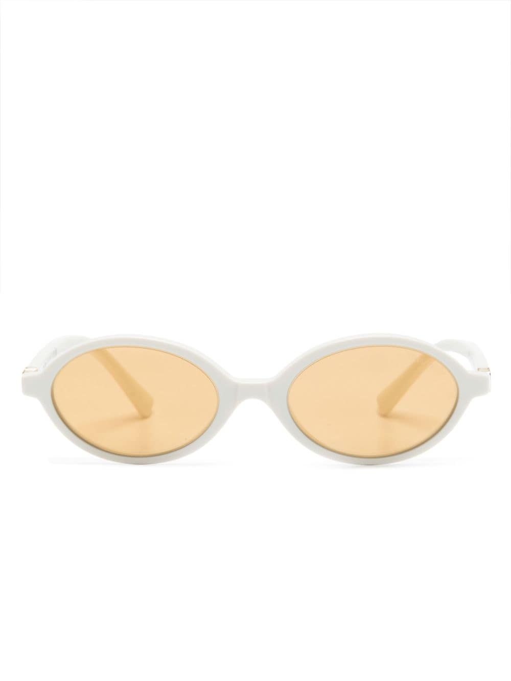 logo-plaque oval-frame sunglasses Highlights - Optical white - Acetate - Oval frame - Orange tinted lenses - Gold-tone logo plaque - Straight arms - Curved tips - These glasses come with a protective case. Composition Acetate 100% SIZE & FIT Measurement Arm Length 5.51 in(14 cm) Bridge Width 0.7 in(1.8 cm) Lens Diameter 1.96 in(5 cm) Total Width 5.11 in(13 cm)