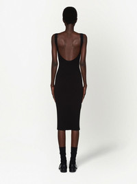 logo-print open-back dress black/white ribbed knit scoop neck open back slip-on style sleeveless mid-length Composition Viscose 82%, Polyester 18% SIZE & FIT Measurement HIPS 22.99 in(58.4 cm) LENGTH 42 in(106.7 cm) WAIST 15.98 in(40.6 cm) BUST 17.99 in(45.7 cm) Washing instructions Read Manufacturer Guidelines