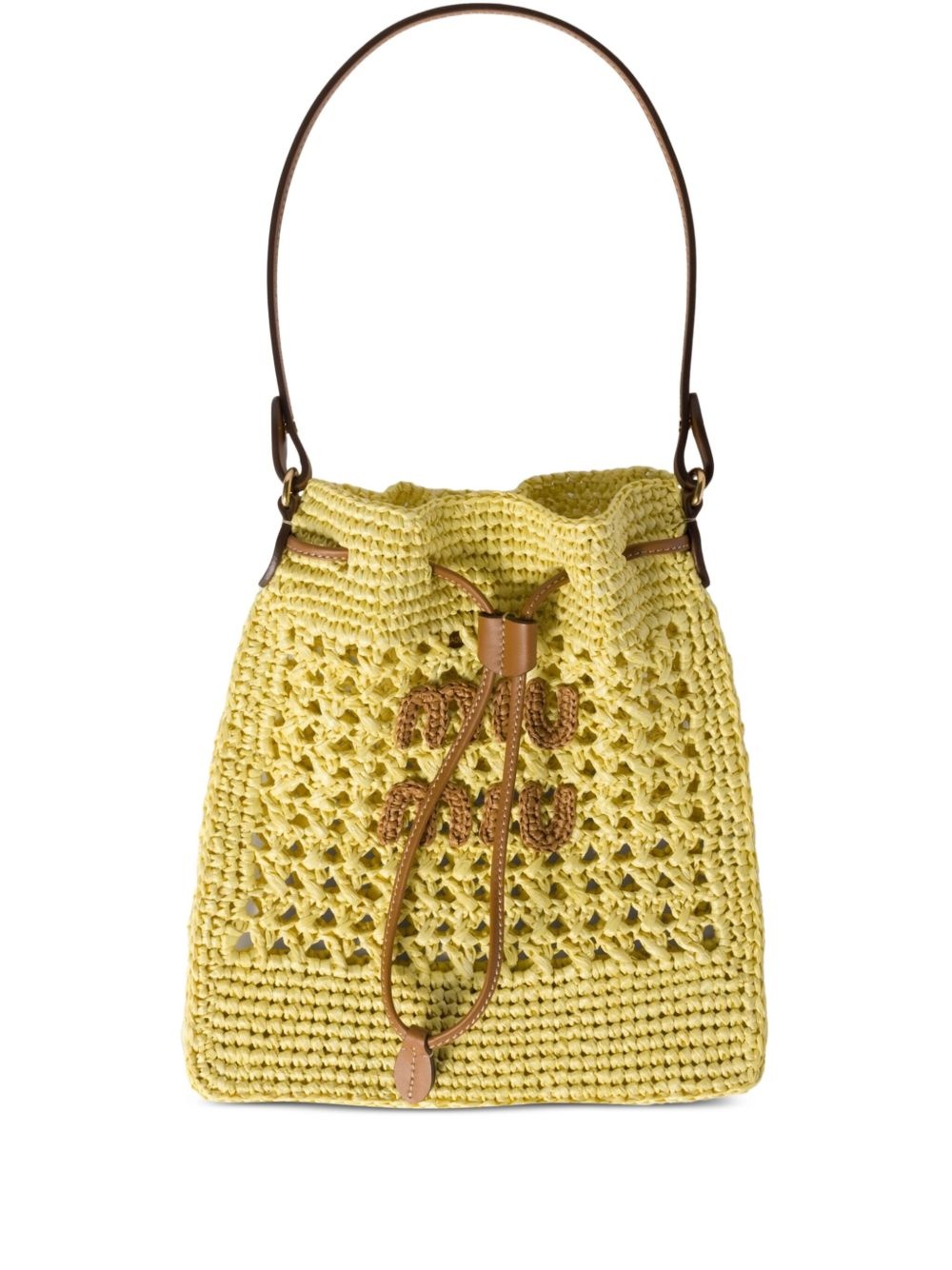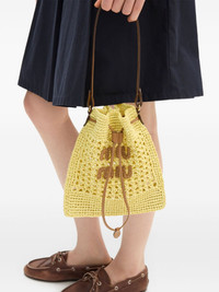 mini crochet bucket bag Highlights - Yellow - Woven design - Top drawstring closure - Leather trim - Single shoulder handle - Interior logo tag Composition Outer: Viscose 100% SIZE & FIT Measurement HEIGHT 9.05 in(23 cm) WIDTH 7.87 in(20 cm)