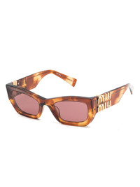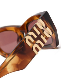 Miu Glimpse rectangle-frame sunglasses Highlights - Brown - Acetate - Marbled pattern - Translucent design - Rectangle frame - Pink tinted lenses - Logo plaque at the arm - Straight arms - Curved tips - These glasses come with a protective case. Composition Acetate 100% SIZE & FIT Measurement Arm Length 5.31 in(13.5 cm) Bridge Width 0.7 in(1.8 cm) Lens Diameter 1.96 in(5 cm) Total Width 5.66 in(14.4 cm)