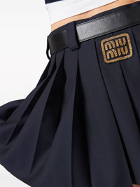 pleated wool miniskirt Highlights - Navy blue - Wool - Knife-pleat design - Applique logo - Belt loops - Concealed side hook and zip fastening - Straight hem Composition Wool 100% Washing instructions Read Manufacturer Guidelines
