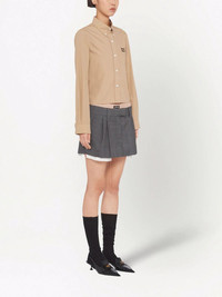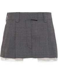 Prince-Of-Wales check mini skirt grey wool layered details Prince of Wales check pattern belt loops concealed front fastening two rear welt pockets Composition Wool 100%