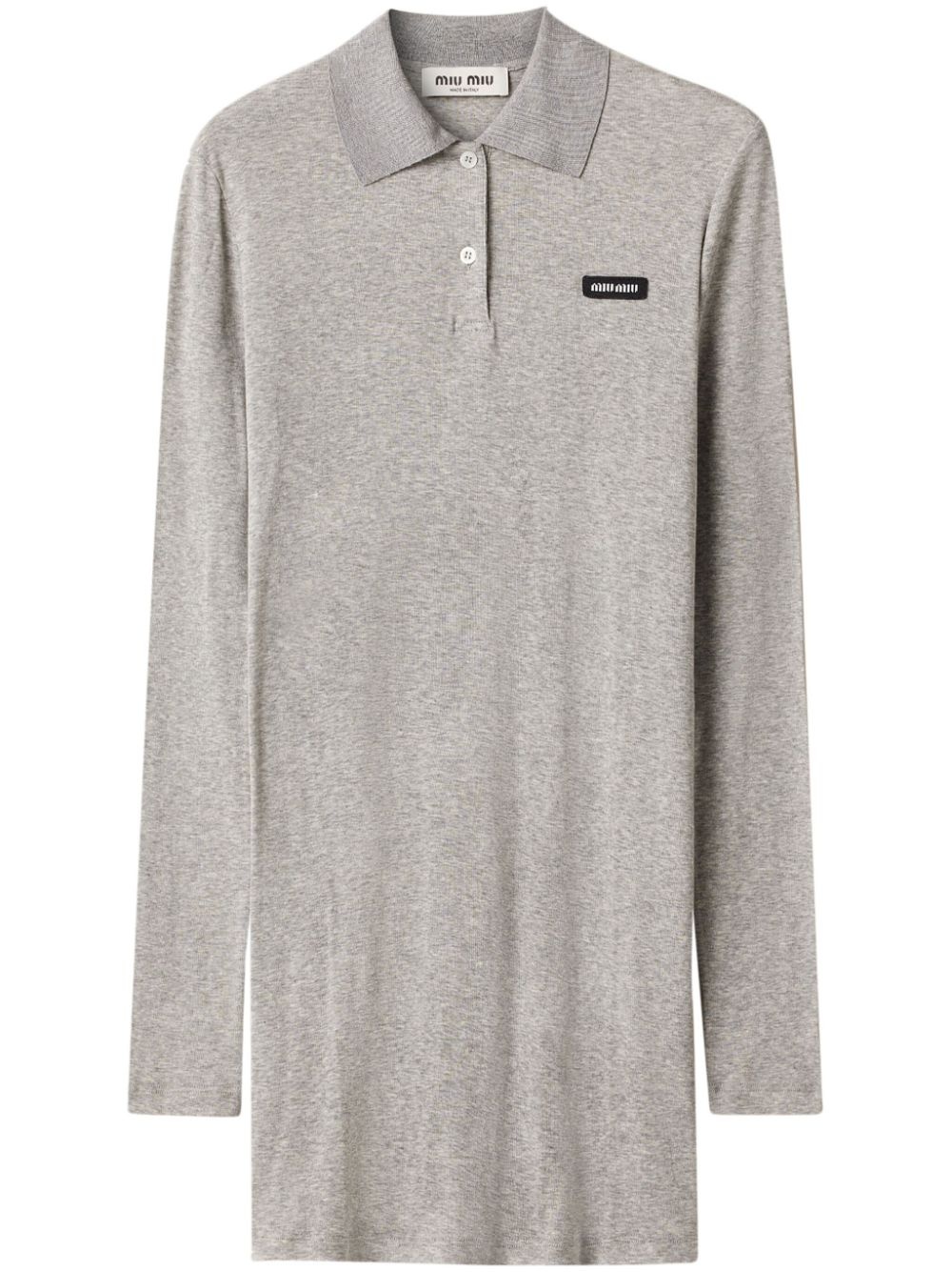 ribbed-knit mini dress Highlights - Taupe grey - Short front button fastening - Logo patch at the chest - Polo collar - Long sleeves Composition Cotton 100%