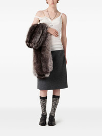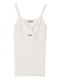 ribbed-knit top Highlights - White - Ribbed knit - Lace stitch - Logo patch - Crossover neckline - Spaghetti straps Composition Cotton 100% Washing instructions Read Manufacturer Guidelines