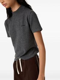 ribbed mock-neck cashmere sweater Highlights - Grey - Mock neck - Short sleeves - Ribbed texture - Intarsia logo Composition Cashmere 100% Washing instructions Read Manufacturer Guidelines