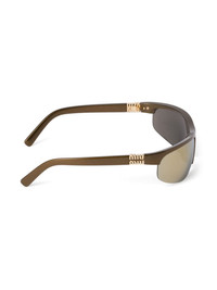 Runway sunglasses Highlights - Acetate - Chocolate brown - Logo plaque at the arm - Tinted lenses - Straight arms - Frameless design Composition Acetate 100% SIZE & FIT Measurement Arm Length 4.72 in(12 cm) Bridge Width 0.55 in(1.4 cm) Lens Diameter 2.75 in(7 cm)