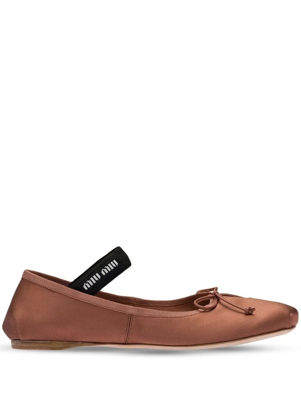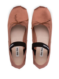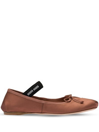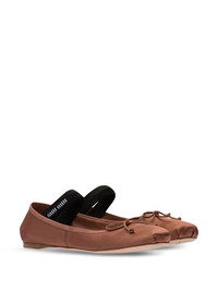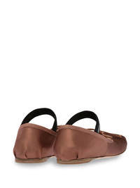 satin slip-on ballerina shoes light brown leather branded insole bow detailing round toe slip-on style flat rubber sole Composition Sole: Leather 100%, Rubber 100% Outer: Satin 100% Lining: Fabric 100% SIZE & FIT Measurement Sole height 0.78 in(2 cm)