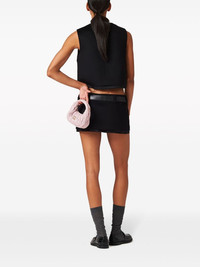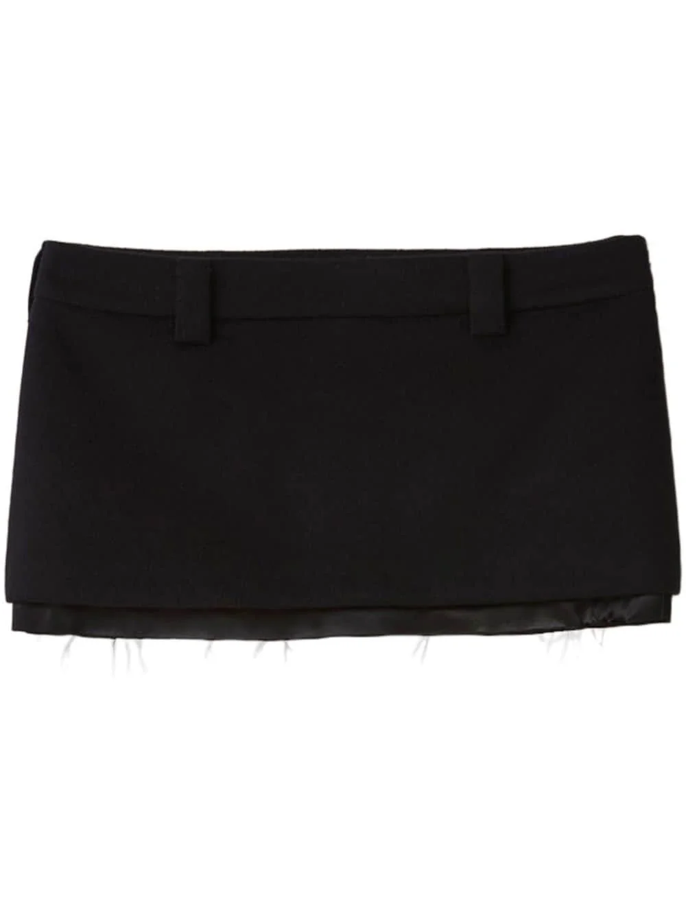 satin-trim velour miniskirt Miu Miu says this miniskirt is a ‘sartorial rebellion’ that uses bold details to update a classic staple. Raw-cut trim peeks out at the hem to create the illusion of an extended lining while a distressed logo at the back of the belted waist reinforces its deconstructed appeal. Highlights - Black - Wool-cashmere blend - Satin trim - Layered design - Embroidered logo to the rear - Raw edge - Low-rise - Belt loops - Belted waist - Thigh length - Straight hem Composition Wool 100% Washing instructions Read Manufacturer Guidelines
