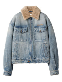 shearling-collar denim jacket Highlights - Light blue - Washed denim - Shearling collar - Front zip fastening - Flap chest pockets - Embroidered logo Composition Cotton 100%, Lamb Shearling 100% Washing instructions Read Manufacturer Guidelines