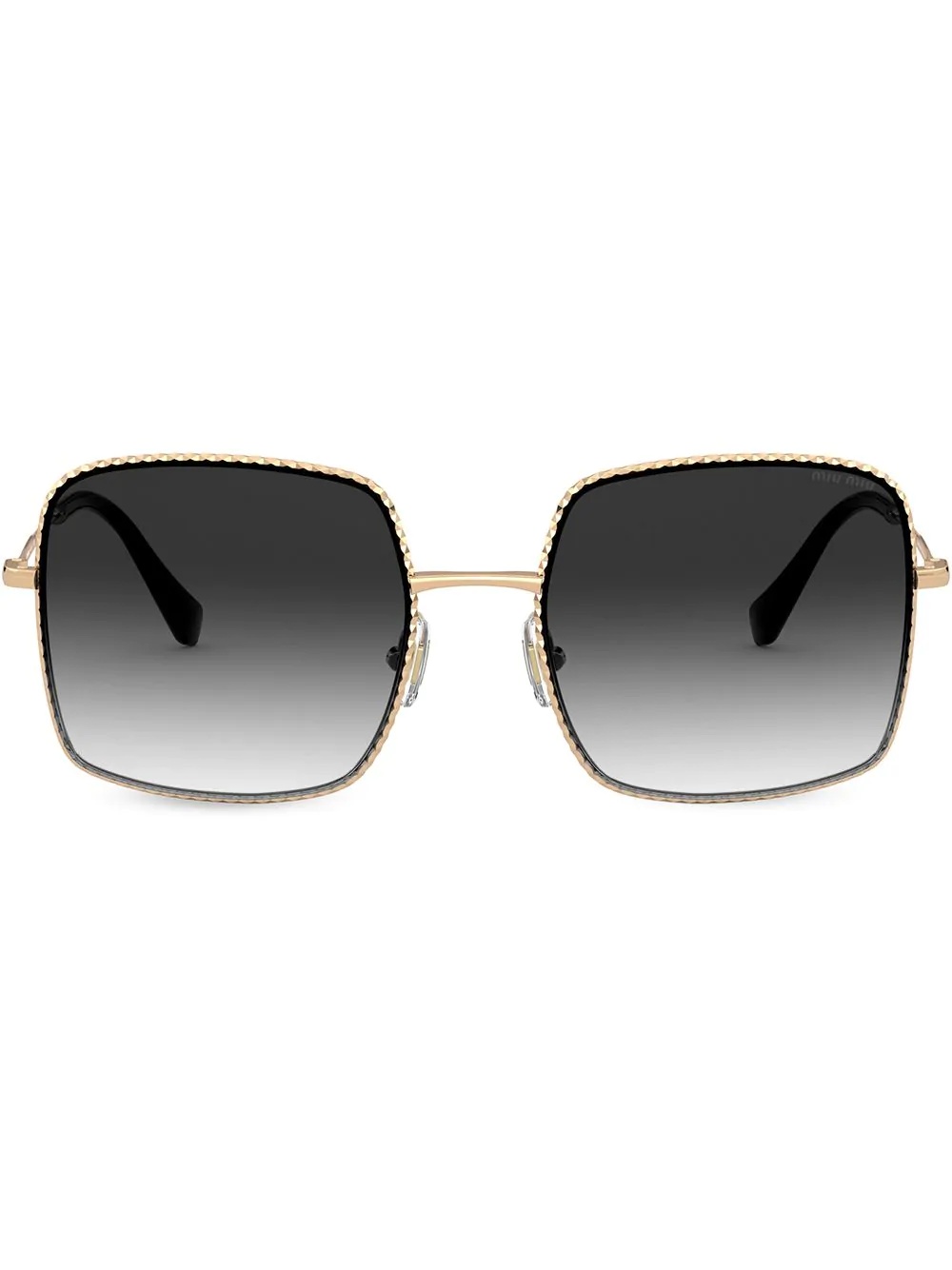 square-frame sunglasses The sun is out and the weather feels great? Well, that looks like the perfect excuse for you to grab these square-frame sunglasses from Miu Miu and go for a walk outside. All that style (really) needs to be seen. Highlights - Black - Metal - Square frame - Gradient lenses - Nose pads - Straight arms - Curved tips. - We know you'll look after them, but these glasses come with protection, just in case. Composition Metal (Other) 100% SIZE & FIT Measurement Arm Length 5.51 in(14 cm) Bridge Width 0.74 in(1.9 cm) Lens Diameter 2.2 in(5.6 cm)