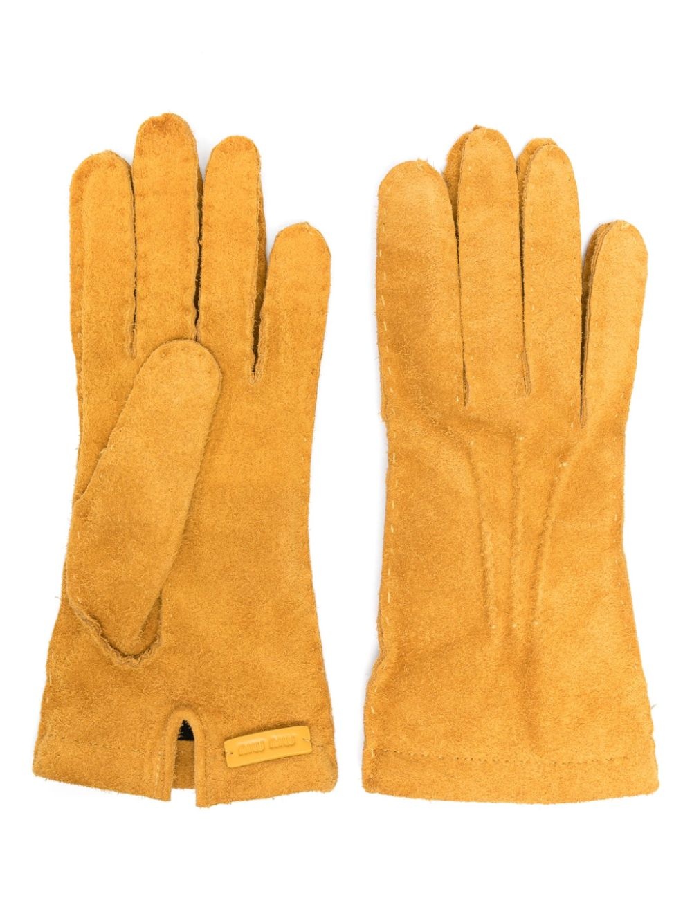 suede gloves Highlights - Mustard yellow - Leather - Suede - Seam detailing - Logo patch to the front - Full-finger design - Cashmere lining Composition Outer: CALFSKIN 100% Lining: Cashmere 100%