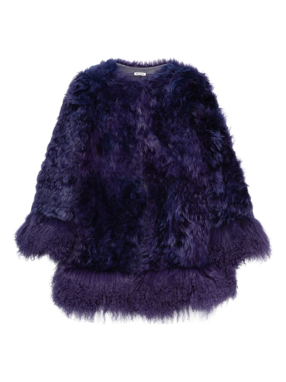 textured coat Highlights - Purple - Round neck - Long sleeves Composition Lining: Viscose 100% Outer: Sheep Skin/Shearling 100% SIZE & FIT Model measurements Height 5 ft 9 in(1.74 m) Bust/Chest 34.64 in(88 cm) Hips 36.61 in(93 cm) Waist 26.37 in(67 cm) Washing instructions Read Manufacturer Guidelines