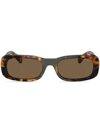 tortoiseshell-effect rectangle-frame sunglasses Miu Miu eyewear channels retro influences with these sunglasses: note the tortoiseshell-effect acetate construction and sleek rectangular-shaped frame. They’re fitted with UV-protective tinted lenses and finished with gold-tone logo lettering at the temples. Highlights - Cedar brown - Acetate - Tortoiseshell effect - Rectangle frame - Logo plaque at the arm - Brown tinted lenses - Straight arms - Curved tips - These glasses come with a protective case. Composition Acetate 100%